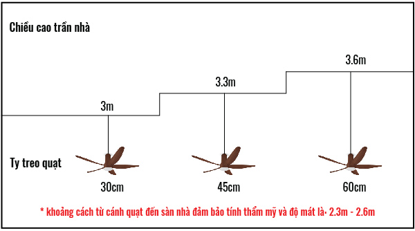 Để mua đúng quạt với độ cao trần cụ thể, bạn có thể áp dụng cách tính đơn giản sau:
